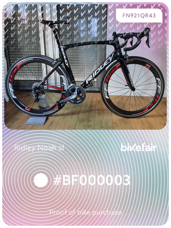 As soon as the change in ownership of the bike is confirmed, BikeFair issues your NFT certificate automatically. The moment when we register the change of ownership differs: in case of purchase with delivery it is automatic, if you pick the bike up in person it happens after you confirm the handover.