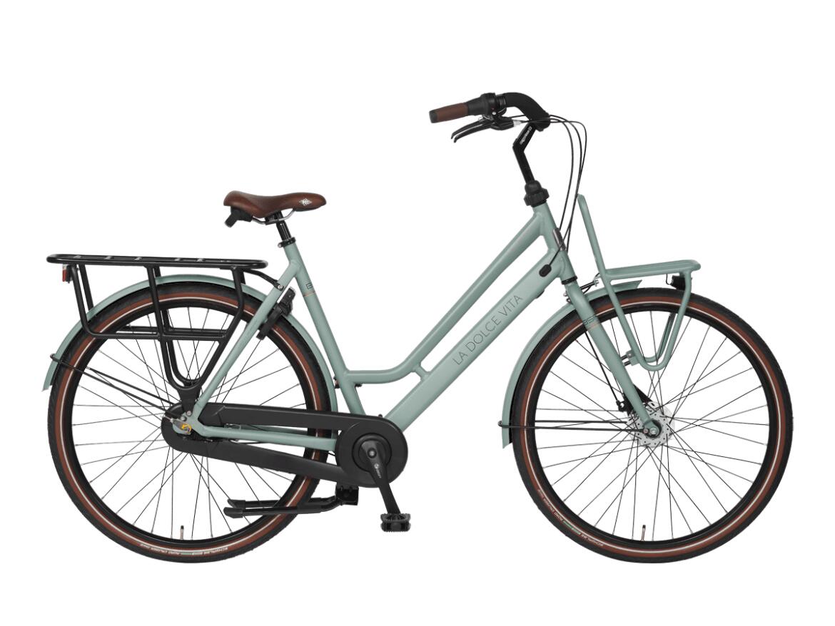 Non electric La Dolce Vita. Rustig je kindje vastzetten in de zitjes dankzij dubbele standaard en stuurblokkering. Stuur en achterdrager berekend op kinderzitjes. Licht trappen, ook met volle bepakking.